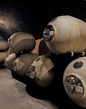 El ambiente natural, protegido del ruido y de agresiones externas, contribuye al proceso lento y equilibrado de maduración y crianza de los vinos. Barricas, foudres y hasta unos cuantos depósitos ovoides de hormigón están situados en esta hermosa bodega subterránea. Da gusto recorrer estas galerías escavadas en la tierra por los antepasados y disfrutar de la mezcla de aromas que desprenden los mostos y el vino que madura y se forma en los diferentes recipientes. Todo un privilegio poder disfrutar de una experiencia como esta.
