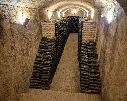 A través de las ya comentadas galerías subterráneas y las grandes bóvedas de cañón hechas de ladrillo, que recorren en más de un kilómetro y medio de longitud el subsuelo de Serrada, vamos a poder descubrir aquí abajo, (con la inestimable ayuda de los guías de la bodega), la memoria habitada de la misma, mantenida viva de forma ininterrumpida durante más de tres siglos y en un último periodo, desde 1941, cuidada como un tesoro cultural inestimable por los descendientes de Alberto Gutiérrez, familia bodeguera ya en su quinta generación. Un paseo por estas cavas subterráneas nos descubre infinidad de pasadizos y nos transmite la agradable sensación de adentrarnos en otra época de la historia, apreciando los secretos del espacio a través de sus calles bajo tierra, que van dando paso a dormitorios de botellas, galerías de barricas y botas jerezanas, enormes barriles de madera que en su tiempo estuvieron llenos de vino y antiguos depósitos de hormigón, perfectamente ubicados en huecos al efecto, realizados muchos años atrás, antes de que empezaran a usarse de forma generalizada por muchas bodegas.