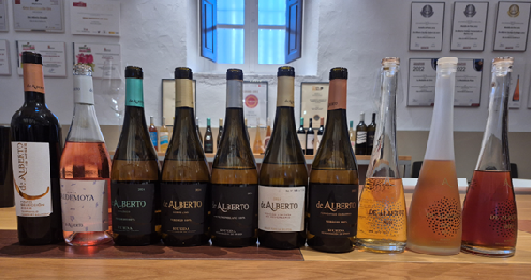 Igual no me equivoco si digo que De Alberto es una de las bodegas de la D.O. Rueda con una gama de vinos más amplia, ya que, junto a una nutrida colección de Verdejos y Sauvignon Blanc, producen también rosados y tintos, además de los grandes y premiados vinos generosos por los que sus clientes sienten especial devoción, (y no es para menos). Porque esta bodega no solo elabora vino: ‘Elabora memoria líquida, respeto por la tierra y legado familiar. Desde sus elegantes tintos hasta sus irrepetibles Dorados, cada botella lleva consigo una historia que vale la pena conocer, disfrutar y brindar por ella’.