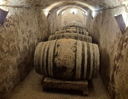 A través de las ya comentadas galerías subterráneas y las grandes bóvedas de cañón hechas de ladrillo, que recorren en más de un kilómetro y medio de longitud el subsuelo de Serrada, vamos a poder descubrir aquí abajo, (con la inestimable ayuda de los guías de la bodega), la memoria habitada de la misma, mantenida viva de forma ininterrumpida durante más de tres siglos y en un último periodo, desde 1941, cuidada como un tesoro cultural inestimable por los descendientes de Alberto Gutiérrez, familia bodeguera ya en su quinta generación. Un paseo por estas cavas subterráneas nos descubre infinidad de pasadizos y nos transmite la agradable sensación de adentrarnos en otra época de la historia, apreciando los secretos del espacio a través de sus calles bajo tierra, que van dando paso a dormitorios de botellas, galerías de barricas y botas jerezanas, enormes barriles de madera que en su tiempo estuvieron llenos de vino y antiguos depósitos de hormigón, perfectamente ubicados en huecos al efecto, realizados muchos años atrás, antes de que empezaran a usarse de forma generalizada por muchas bodegas.