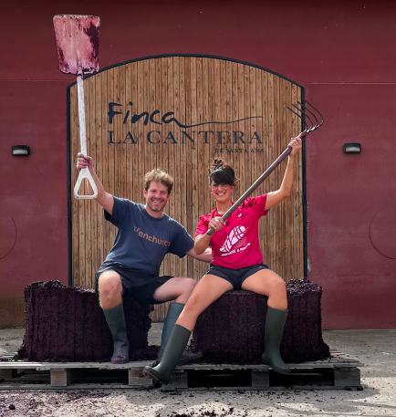 Silvia Peña, barcelonesa hija de burgalés de la zona en donde se almuerza a diario en las bodegas subterráneas. Tomás Santos, pamplonica hijo y nieto de corredores de vino y con experiencia en bodegas de Navarra, Rioja y también en Francia. Ambos habían estudiado Biología, pero con el gusanillo del vino corriendo por sus venas, se conocieron y decidieron irse a Tarragona a formarse como enólogos, para después de estar varios años desarrollando su vida laboral por separado, se lanzaron a llevar a cabo su propio proyecto. Desde el año 2017 dirigen juntos este proyecto bodeguero, porque es aquí, en La Cantera de Santa Ana, dónde decidieron establecerse para desarrollar su proyecto enológico más personal, con el respaldo del Grupo Vidmundi.