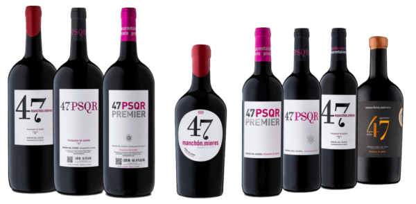 Manchón Mieres-47 PSQR es un vino tinto elaborado por la Bodega Manchón & Mieres con uvas seleccionadas de la variedad Tempranillo, procedentes de un único pago de su propiedad plantado en espaldera en el año 2001 a 900 m de altitud, sobre suelo calizo-pedregoso, en la zona del Páramo en Pesquera de Duero. Vendimia manual seleccionada y elaboración tradicional, con fermentación en depósitos pequeños de acero inoxidable a temperatura controlada y con una crianza posterior en barrica de roble francés y americano durante 12-14 meses.