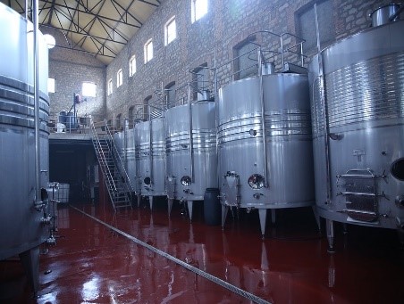 Así después de una espaciosa zona de fermentación con multitud de depósitos de acero inoxidable de 10 a 26.000 litros con doble camisa refrigerada por agua, pasamos a la zona de crianza y envejecimiento de los vinos, (tintos de crianza, reserva, moscatel, etc..), donde emplean barricas de roble francés y americano haciendo con ellas unos perfectos ensamblajes. Todo ello se encuentra en unos sótanos y túneles en el edificio, con esas enormes paredes que superan el metro de grosor, lo que permite conservar una temperatura y humedad constantes e idóneas para la crianza y envejecimiento de estos vinos para que se puedan desarrollar en unas condiciones naturales inmejorables. Luego, tras el proceso de crianza en las barricas, los vinos son embotellados en la planta que disponen para ello, dejándolos reposar en la nave dedicada a Botellero durante un largo periodo de tiempo. Así van a realizar esa segunda crianza en botella y terminar su afinamiento antes de sacarlos al mercado.