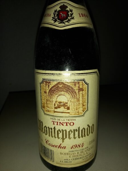 Como hemos visto y queda bastante demostrado, gran cantidad de vinos diferentes son los que se elaboran en Bodegas Benito Blázquez e Hijos en esta bonita localidad, cercana a Ávila, llamada Cebreros. Personalmente he de reconocer que el único vino que yo conocía de esta Bodega, era (desde bien niño, y de eso hace ya muchos años), su “vino corriente” PERLADO, que llegaba regularmente por mi casa para ser un vino de mesa, (sin más). Llegaba en Botella de cristal, (creo recordar que de 1 litro, o quizá más bien de litro y medio), porque lo del tetrabrick fue muy posterior. Mucho tiempo después, pasé un día por la Bodega y compré unas Botellas de MONTEPERLADO, cosecha 1984, (incluyo foto concreta de ese vino que aun conservo).