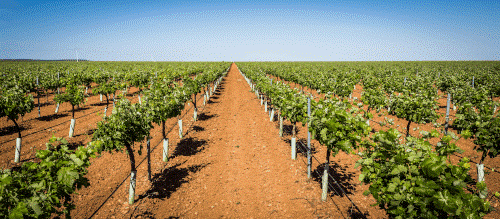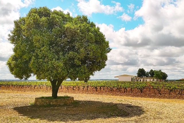 El viñedo consta de varias zonas contiguas: Finca La Carrasca, La Numancia, la Elipa, El Corral y Los Salvadores, o también el Ventorro y los Andreus, que abarcan más de 1000 hectáreas, donde además de la vid, también se cultivan cereales y olivos. Pero volviendo al viñedo, decir que en esta bodega disponen de hasta 15 variedades de uva diferentes. Así vamos a encontrar: Airén, Chardonnay, Macabeo, Moscatel, Sauvignon Blanc, Viura y Verdejo, en uva Blanca. Y Bobal, Cabernet Franc, Cabernet Sauvignon, Garnacha, Merlot, Petit Verdot, Shiraz y Tempranillo, en uvas Tintas. Además, anualmente reservan una pequeña parte del viñedo para realizar pruebas con otras variedades de uva, para poder analizar mejor la producción de cada temporada en función de los fenómenos meteorológicos sucedidos, para obtener datos y sacar conclusiones que les ayuden en próximas plantaciones y/o elaboraciones.