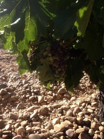 Otro aspecto destacable y diferenciador es el suelo. Aquí, el tipo de suelo cubierto por canto rodado, es muy beneficioso para la cepa ya que permite una buena absorción del agua, sin dejar humedades en el exterior que son las que pueden trasmitir enfermedades posteriores. Estos cantos rodados conservan el calor del día para desprenderlo poco a poco durante la noche, favoreciendo que la maduración de la uva sea excelente y mucho más homogénea. Este ciclo potencia la maduración de los racimos durante su ciclo vegetativo. La capa del subsuelo puede ser caliza o arcillosa y mantiene un grado de humedad constante que permite a la cepa desarrollarse en todo su esplendor.