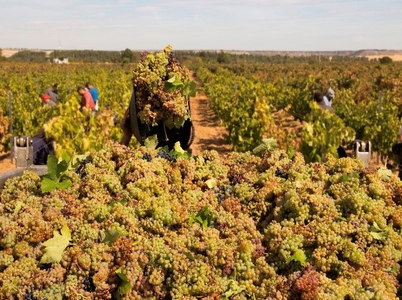 El 80% de sus cerca de 60 Ha de viñedo tienen más de 80 años. Algunas, incluso son ya centenarias. Las viñas propias se reparten en diversos pagos de la D.O. Cigales, entre Mucientes y Cubillas de Santa Marta (con viñas en el histórico Sallana), por lo que cada una tiene características y matices del terruño diferentes con los que se van a poder elaborar unos excelentes vinos. Además, esta dispersión es una gran ventaja para mantener la personalidad de cada vino y una salvaguarda ante posibles condiciones climatológicas adversas. En el conjunto del viñedo, más o menos el 70% está plantado en vaso, (sobre todo el viñedo más viejo) y el resto en espaldera.