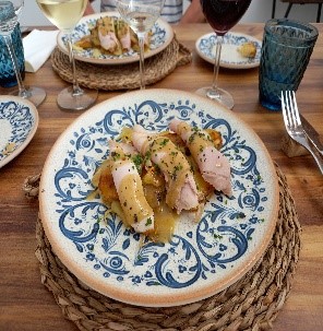 Pues sí, sin duda ha sido esta una visita que realmente ha merecido la pena. Además, tuvimos la suerte de hacerla con MARIA, (hija de EMI y como ya comentamos responsable de enoturismo y miembro de la 4ª generación de la Familia Pacheco). Guía excepcional que nos fue explicando con todo detalle el recorrido de la bodega, haciendo el mismo viaje que cada año realiza la uva, desde el viñedo hasta la botella. Realmente nos hemos sentido, (sin serlo), como una parte más de la familia hasta descubrir las antiguas barricas y el Lagar dónde se pisaba la uva, para terminar en la ya mencionada CASA DE LOS ABUELOS y degustar una magnífica comida murciana con una exquisita elaboración, armonizada con diferentes vinos de la bodega. Como digo, una excelente visita y totalmente recomendable.