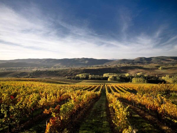 Otro de los elementos particulares de la bodega, (y que Vicente sabía perfectamente), es su microclima, mezcla de los climas mediterráneo, atlántico y continental. Se trata de una zona con una diferencia térmica entre el día y la noche de 10 a 15ºC en verano, lo que favorece la retención de azúcares, formación de aromas y antocianos en la piel y la maduración de los taninos, un ciclo que acaba con la vendimia, que tiene lugar de forma manual y con recogidas en cajas de 15 kilogramos aproximadamente.