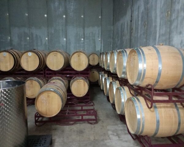 No obstante, no todos los vinos se elaboran en depósitos de inoxidable. La Mencía vieja de los parcelarios se vinifica en grandes tinos de madera de roble, que han hallado su sitio en la nave “grande”, en la que encontramos la embotelladora, prensas, contenedores IBC de plástico, jaulones botelleros vacíos, una cámara para enfriar la uva antes del encubado, serpentines de frío, cajones de plástico “paletizados” para la vendimia (en El Bierzo, “palós”)… y, junto con los foudres, varios “siemprellenos” y depósitos de pequeños formatos con su correspondiente instalación de frío.