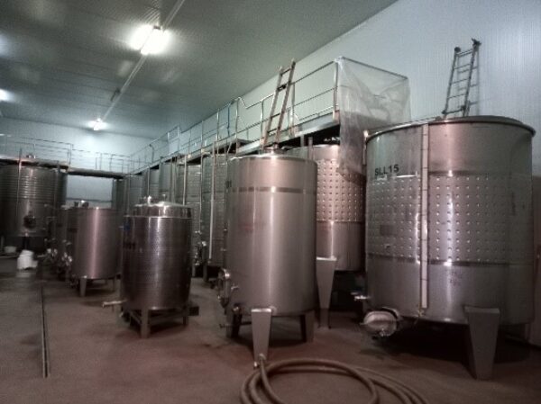 Pero nos gusta adentrarnos en la bodega para tratar de descubrir algunas de las claves de los vinos de este elaborador desde su interior. La sala de fermentación consta de una quincena de grandes depósitos (de hasta 25.000 litros) salpicada de otros de diversos formatos más pequeños, todos ellos de acero inoxidable. La bodega es sencilla, pero bien equipada, con aislamiento térmico no solo en las paredes sino en el techo, pasarelas sólidas y una escalera amplia, para trabajar bien en altura.