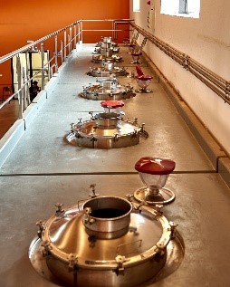 La fermentación es un proceso espontáneo provocado por levaduras autóctonas, con total ausencia de adición de cualquier tipo de producto enológico (acidificantes, taninos, glucosa, encimas etc.). Para ello utilizan aquí diferentes recipientes, no solo los ya habituales depósitos de acero Inoxidable, también tanques y huevos de hormigón, (fueron los primeros de la zona en volver a utilizar el hormigón para fermentaciones y a veces para crianza) y también fudres de roble con diferentes formas y capacidades.