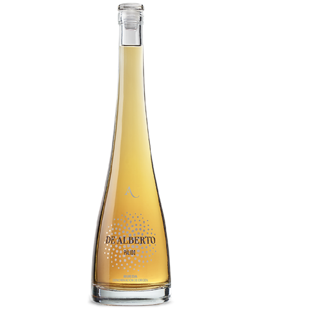 DE ALBERTO PALIDO VERDEJO es un vino generoso-seco de Rueda elaborado por Bodegas De Alberto con vino-base de Verdejo que, después de ser encabezado con alcohol vínico a 15 grados, tiene una singularísima y tradicional elaboración en crianza biológica bajo ‘velo de flor’ durante un mínimo de tres años en botas de roble de 500-600 litros en la tranquilidad de la bodega subterránea de Serrada (Valladolid). Realmente es una “Joya Oculta” con una producción limitada de la que no suelen ver la luz más de 1.400 botellas (50 cl) al año. Esto unido a una, más que cuidada presentación, hace de este vino una verdadera sorpresa para los aficionados a los generosos y a los que buscan elaboraciones especiales.